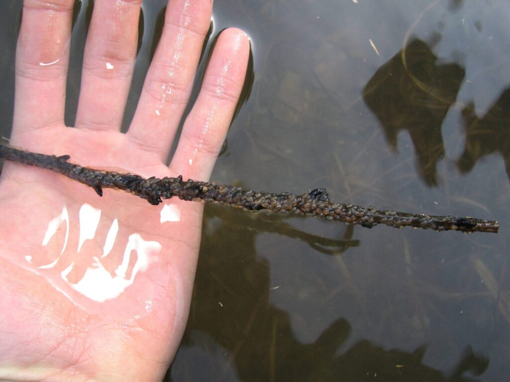 モツゴは下顎がやや突き出した上向きの細長い口を持ち、別名クチボソとも呼ばれます。口ひげはありません。様々な場所に卵を産み付け、繁殖力が強く、水辺環境が悪化する中でも最後まで生き残る淡水魚の一つです。筑後川流域でも人工的な水路などでたくましく生息している様子をみることができます。海外ではヨーロッパなどで定着して外来種として問題になっています。そして日本でも国内由来の外来種として、近縁種で希少種でもあるウシモツゴ(東海地方)やシナイモツゴ(関東~東北)との競合や雑種化が問題になっています。