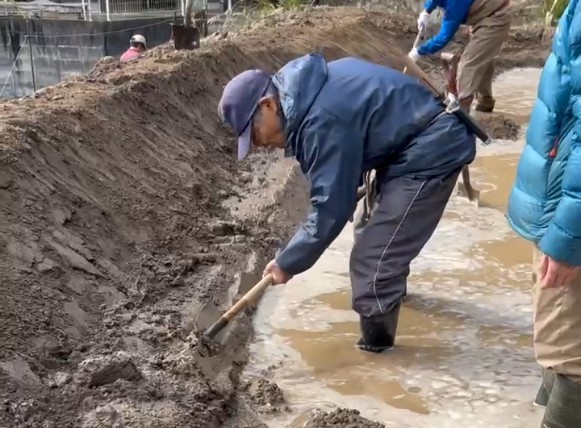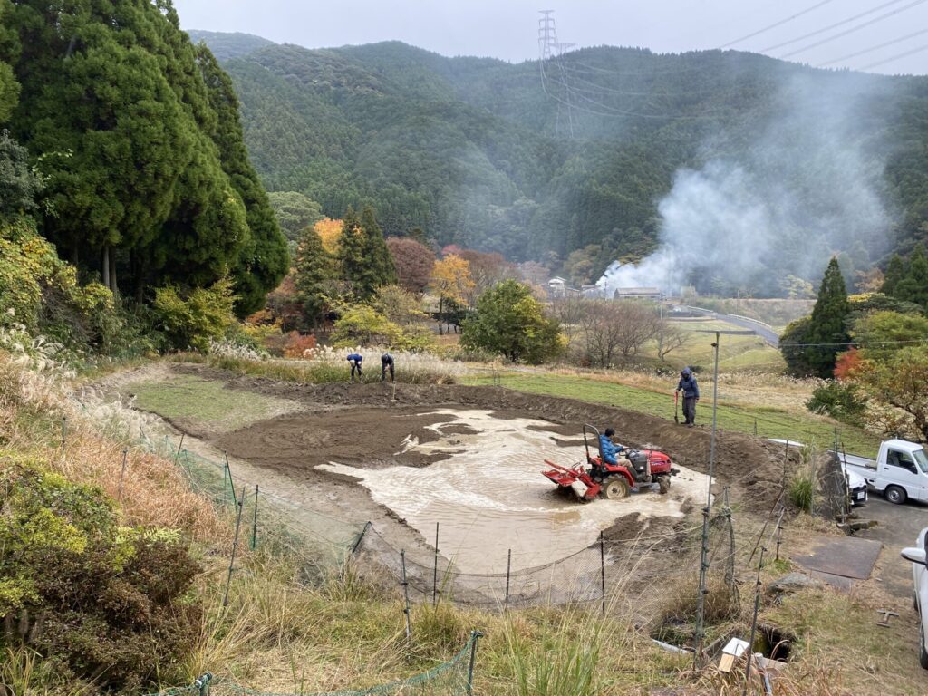 地域の方監修のもと畔塗りも実施!畔からの漏水を防ぐためです。
