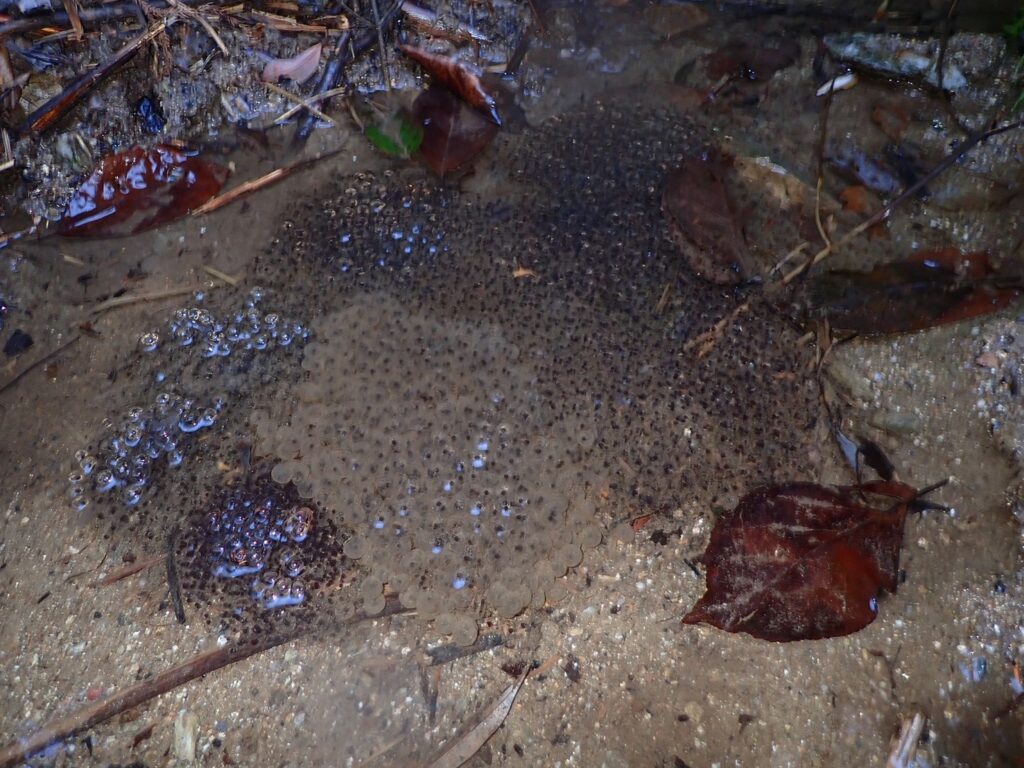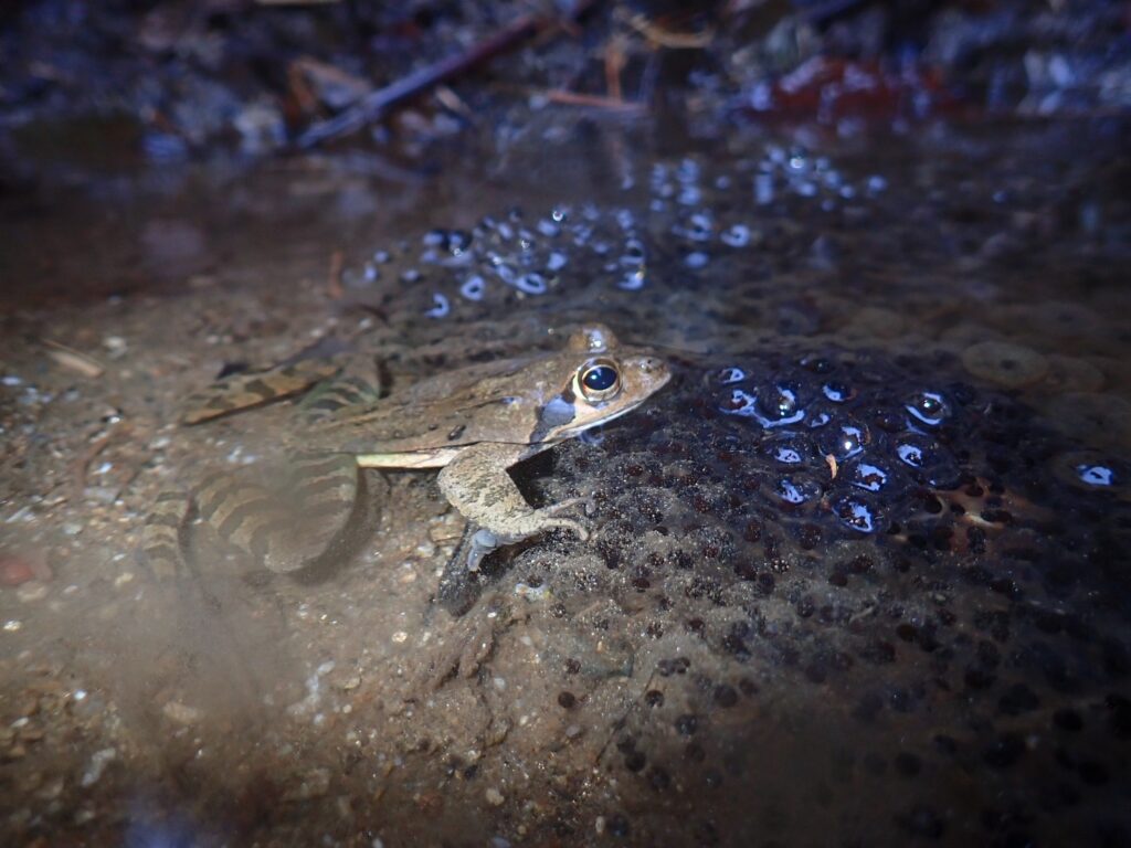 秋月に生息するカエル9種の内,冬に産卵をするのは「ヤマアカガエル」と「二ホンヒキガエル」の2種が代表的です.新年を迎え,早速ヤマアカガエルの産卵を確認することができました!うれしい!