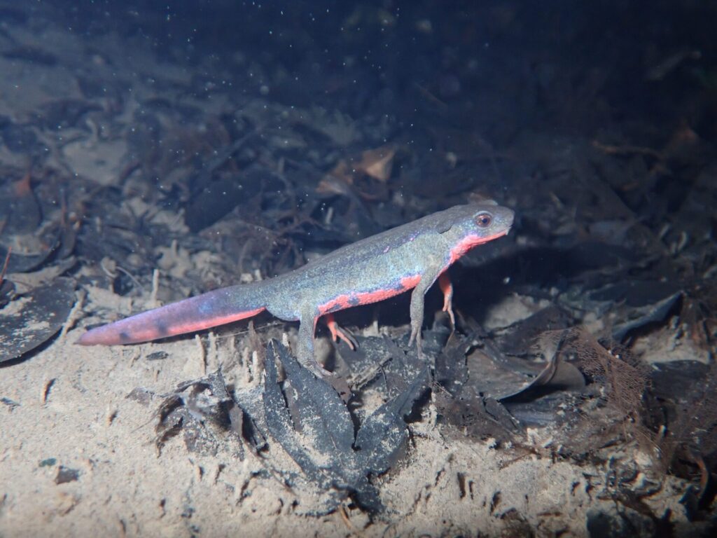 2025/4/17 内蔵助湿地でアカハライモリを確認!